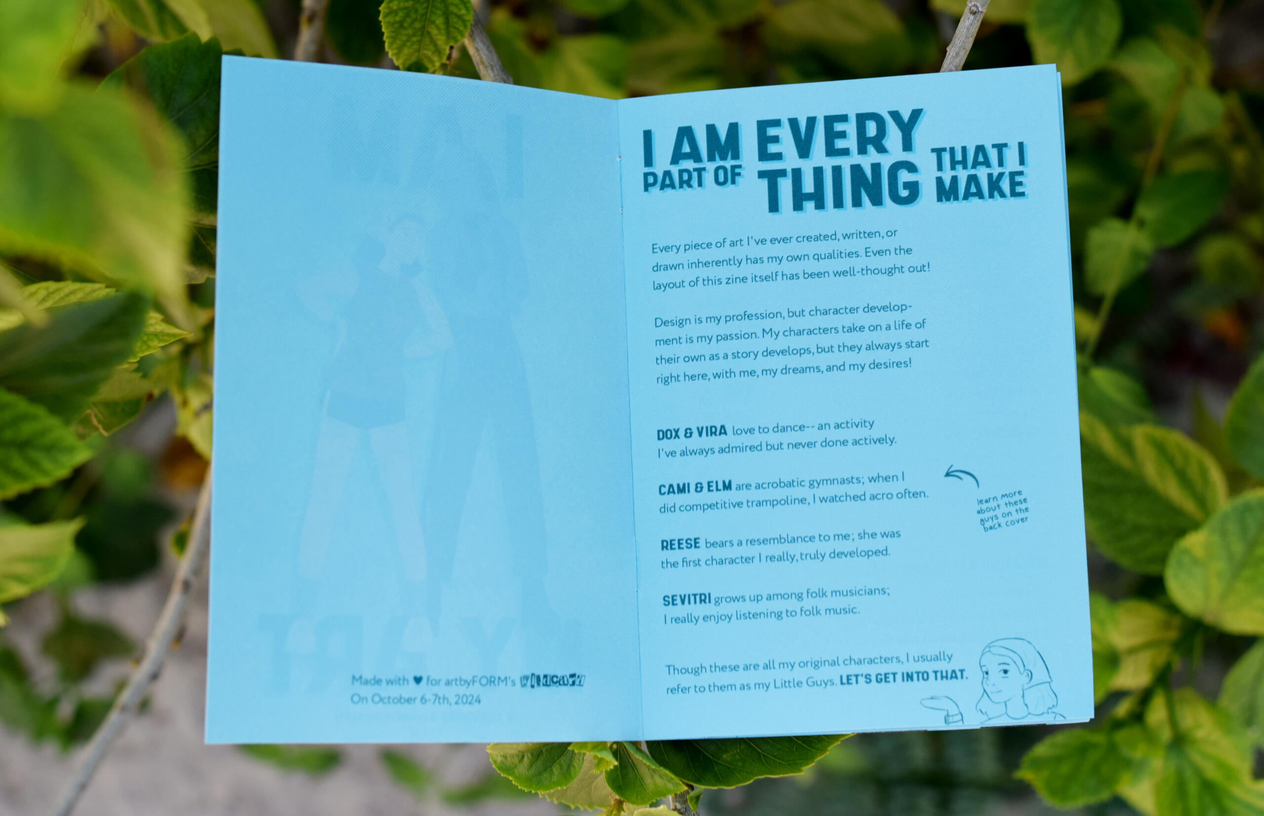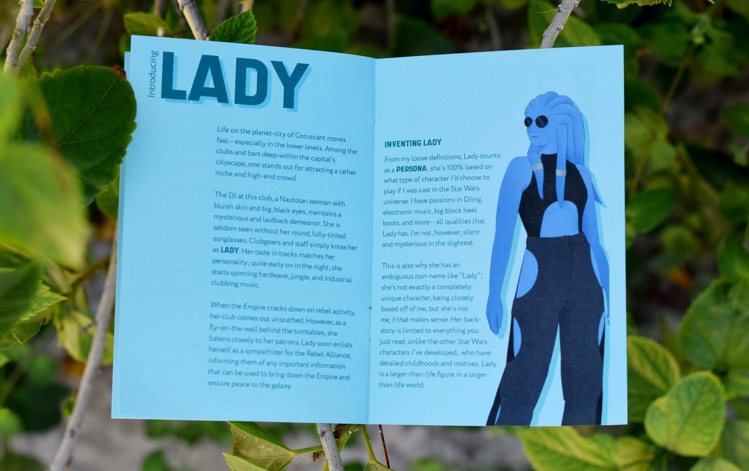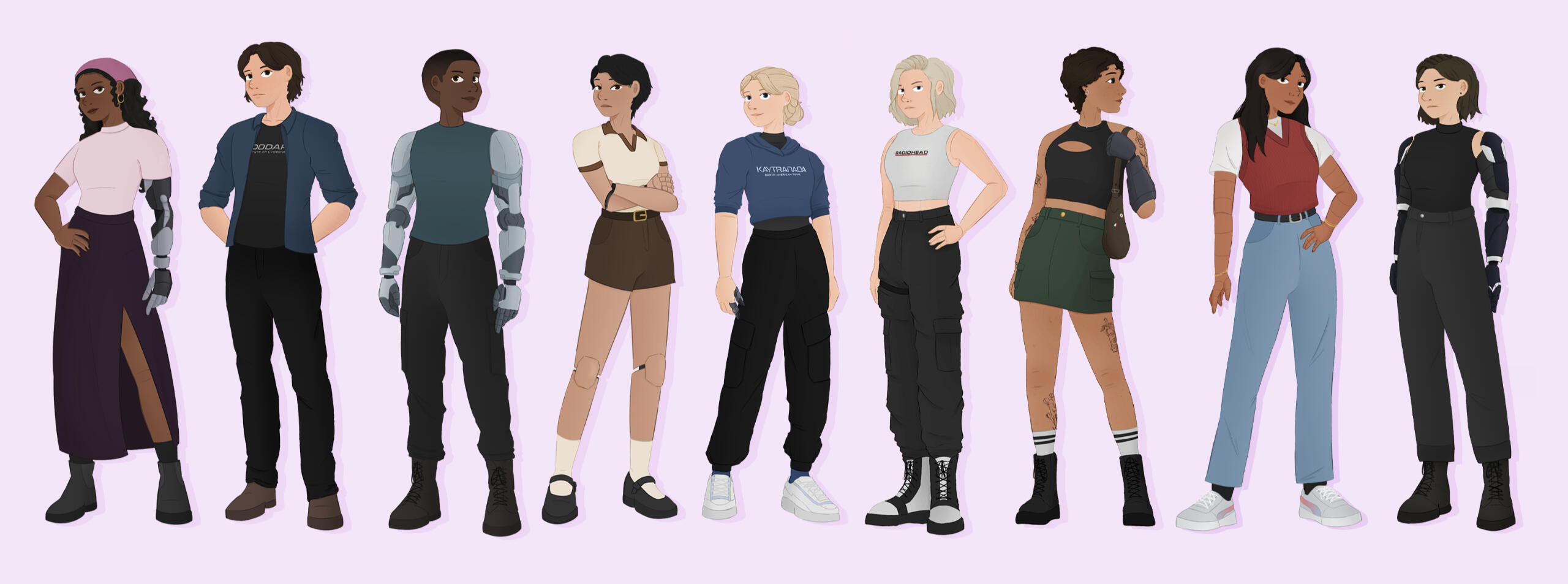 i'm an online creative and i do a lot of things! design, writing, photography, drawing, and video editing have been major passions of mine for a long time.growing up in the southwest means exploring any indoor activity to avoid the summer heat. as a teen, i got really into making video edits, leading me to motion graphics and graphic design. i got my bachelor's in visual communication design (VCD) in 2024. i'm also on the board of directors and do plenty of design work for for artbyFORM, a 501(c)(3) nonprofit community for online creatives that puts on a variety of art-related charity events. i've done a little bit of everything!drawing wasn't something i considered a regular hobby until i was 18! by that point, i was mostly a writer and wanted to really see (and let others see) what i was writing. it was a dedicated effort to really learn how to draw as an adult and there's still so much i want to improve on, but i'm grateful it stuck! most of my drawing and writing revolves around The Operatives (a team of operatives in a cybernetics-based world) or Lunar Squadron (a band of rebels based in the Star Wars universe).i love what i do and i do what i love!